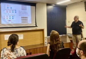 Com o objetivo de desenvolver uma terapia imunológica (imunoterapia) mais eficiente contra o câncer, o pesquisador João Paulo de Biaso Viola (INCA) procura entender como o organismo produz as células de memória. Com a palestra intitulada “Diferenciação de células T CD8 de memória apresentam padrão de expressão gênica comum a células efetoras e precursoras de memória”, o Dr. João Viola encerrou, no dia 12 de julho, o ciclo de seminários presenciais do Programa de Oncobiologia em parceria com os Seminários ALV, promovidos pelo Instituto de Bioquímica Médica Leopoldo de Meis (IBqM/ UFRJ).