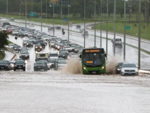 Volume de chuvas no DF alaga pistas e causa transtornos em cidade satélite em janeiro de 2024. Foto: Fabio Rodrigues-Pozzebom/ Agência Brasil