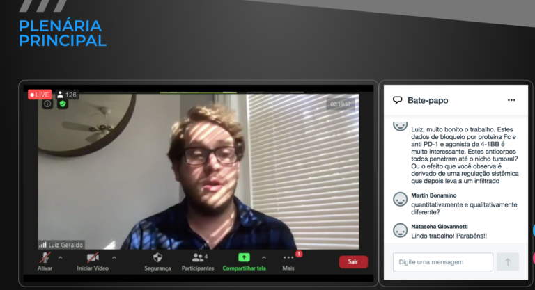 A palestra de abertura do XIV Simpósio de Oncobiologia foi um sucesso! E suscitou muitas perguntas e elogios. Robson Monteiro (UFRJ), coordenador do Programa de Oncobiologia, foi o moderador das palestras da parte manhã, neste primeiro dia de evento. Com jogo de cintura para lidar com imprevistos na transmissão ao vivo e sempre atento às perguntas formuladas pelos chat, fez a moderação entre os palestrantes e a plateia virtual do evento.